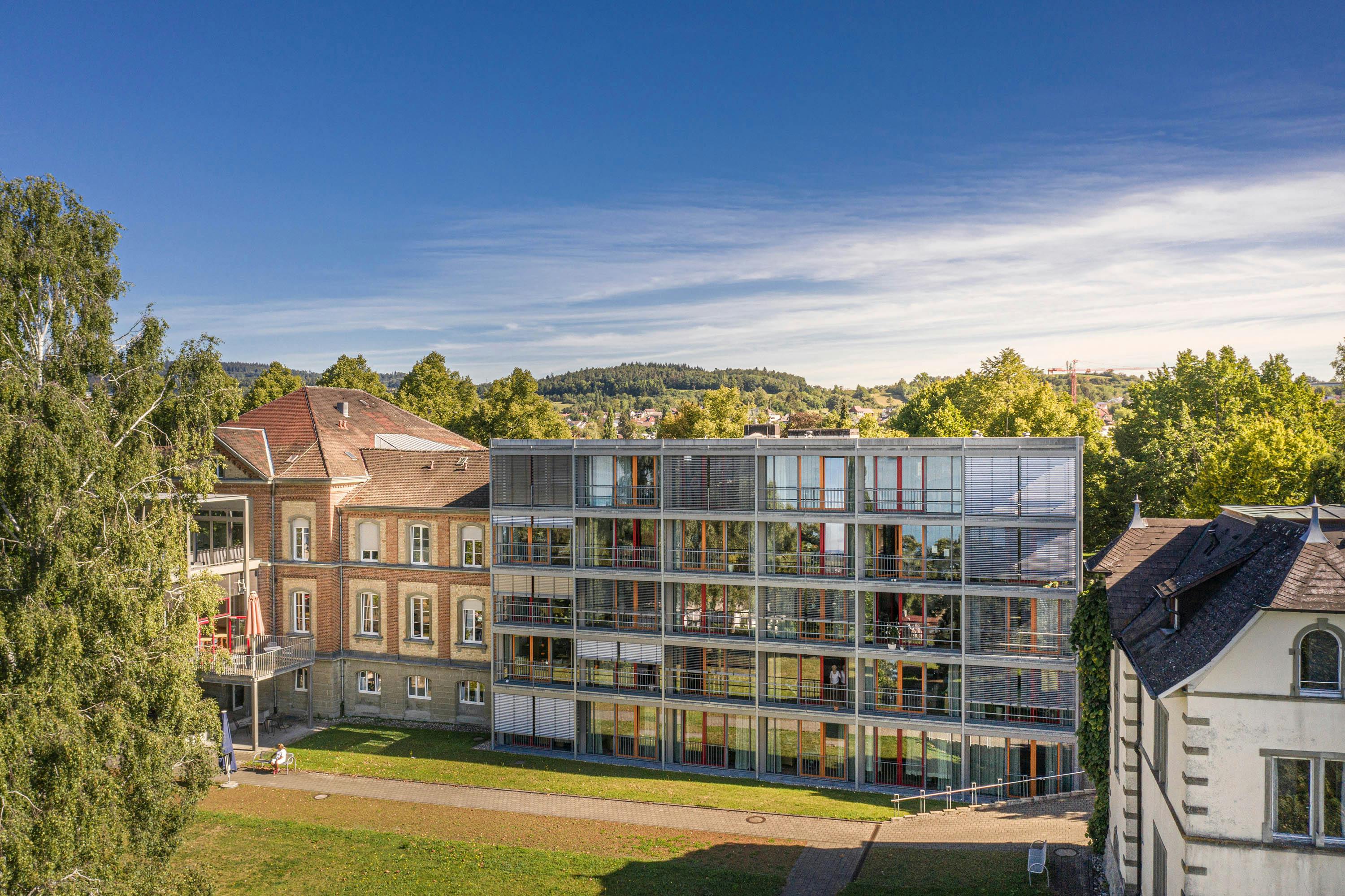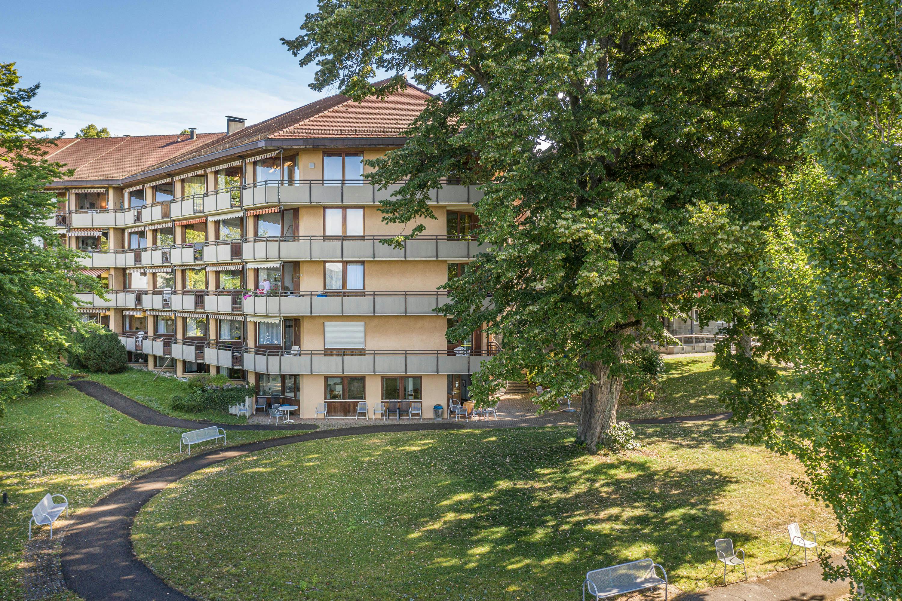 Seine exponierte Lage mit uneingeschränkter Panoramasicht und die weitläufige Parkanlage mit ihrem alten Baumbestand machen das Haus zu einem Ort, an dem sich seine Mitbewohner geborgen fühlen können.