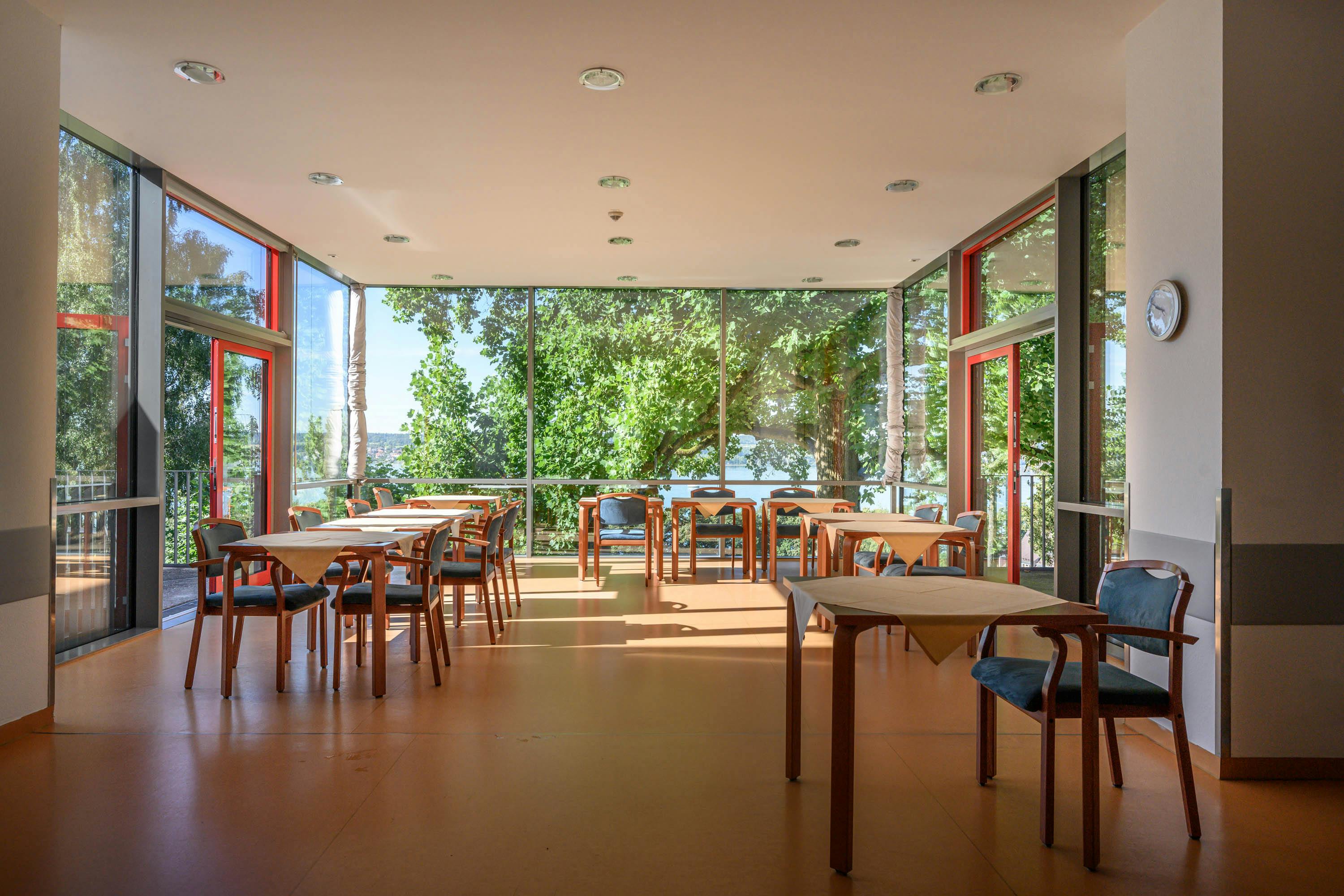 Von nahezu jedem Zimmer aus können die täglich wechselnden Naturschauspiele des Bodensees beobachtet werden. Auch Besucher schätzen den einmaligen Blick, wenn sie von der Cafeteria aus auf den See blicken. Wer mobil ist, erreicht in wenigen Minuten über einen kleinen Fußweg das Stadtzentrum, die Seepromenade, Kirchen und städtische Einrichtungen. Darüber hinaus kann der Stadtbus genutzt werden, der regelmäßig pendelt.