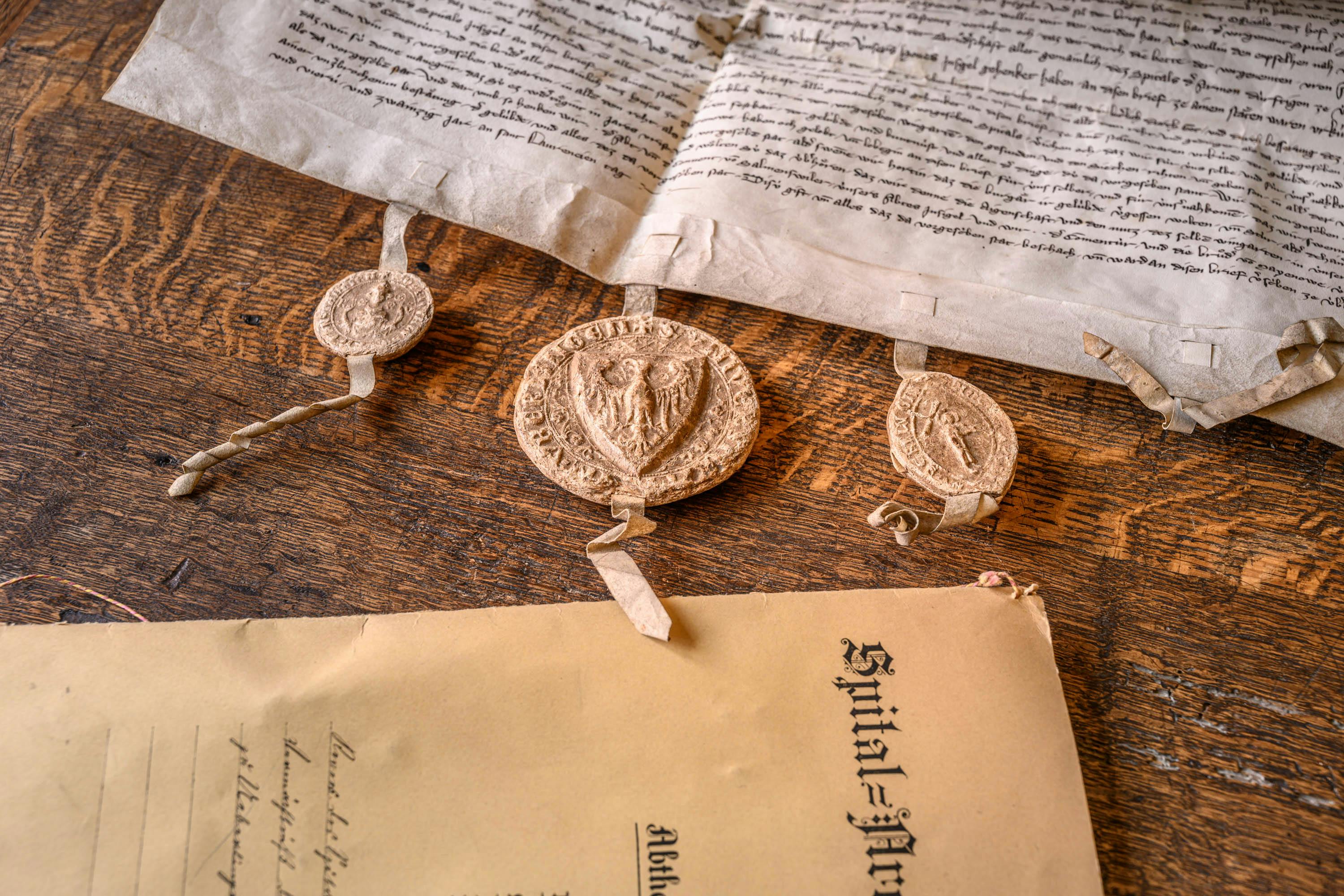 Vermögende Bürger folgten dem Beispiel der Stifter und sicherten sich durch Schenkung von Gütern Unterkunft und Pflege im Alter. Mit reichen Jahrtagsstiftungen für sich und ihre verstorbenen Angehörigen bewahrten sie ihr Andenken und sorgten für das eigene Seelenheil. So kam der Spital schon in den Anfangsjahren zu beträchtlichem Besitz, erhielt Häuser, Weinberge und Ländereien übereignet.